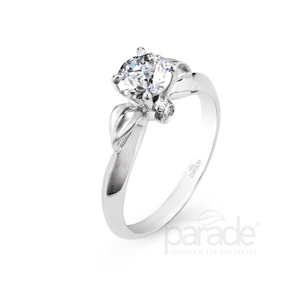 A brilliant round diamond elegantly emerges from a LYRIA bloom.